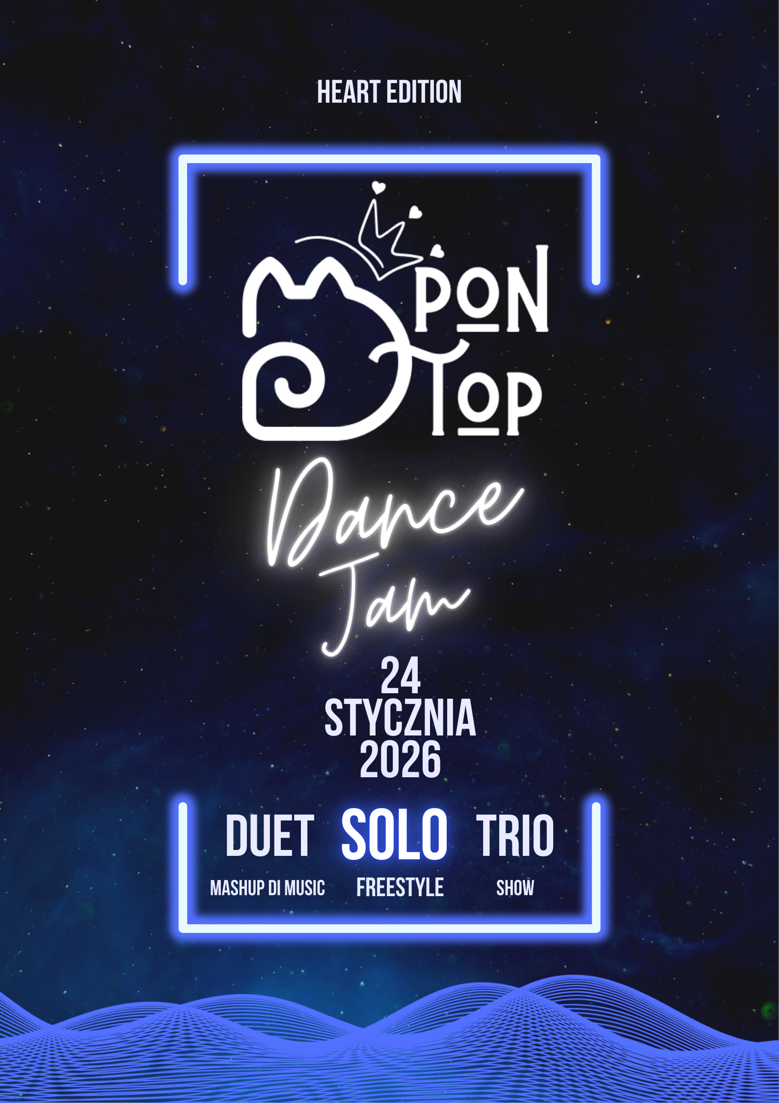 24 stycznia start: 16:00 Zapraszamy Was na taneczny JAM / ZAWODY FREESTYLE, podczas których tańczymy, rywalizujemy i pomagamy – gramy dla WOŚP Mash Up The Music – freestyle do muzyki organizatora Liczy się vibe, energia i autentyczność Każdy taniec to realne wsparcie dla dobra innych KATEGORIE SOLO | DUETY | TRIO Mash UP The Music …